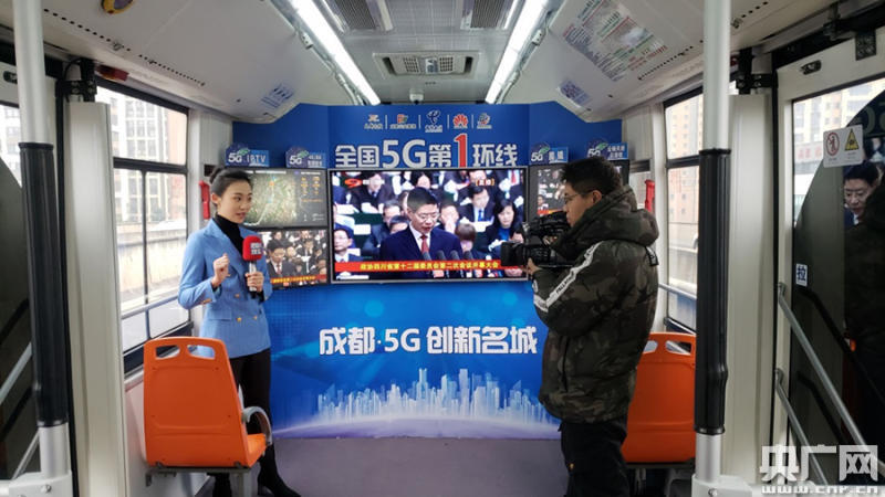 公交車上通過5G網(wǎng)絡(luò)直播兩會(huì)(央廣網(wǎng)發(fā) 四川電信供圖)