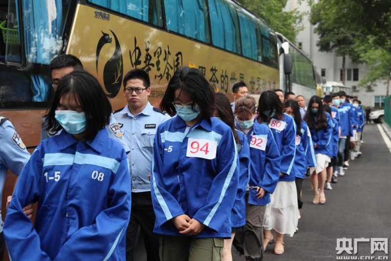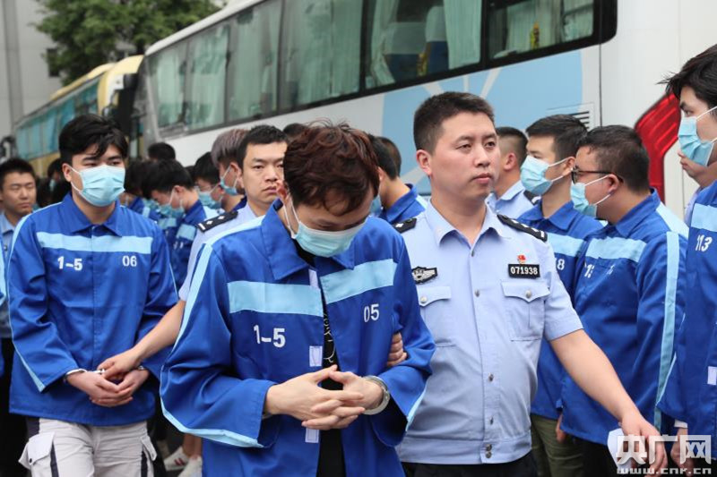 6月15日下午,127名犯罪嫌疑人在民警的押解下,經(jīng)過(guò)24小時(shí)的長(zhǎng)途跋涉,被押解回蓉。