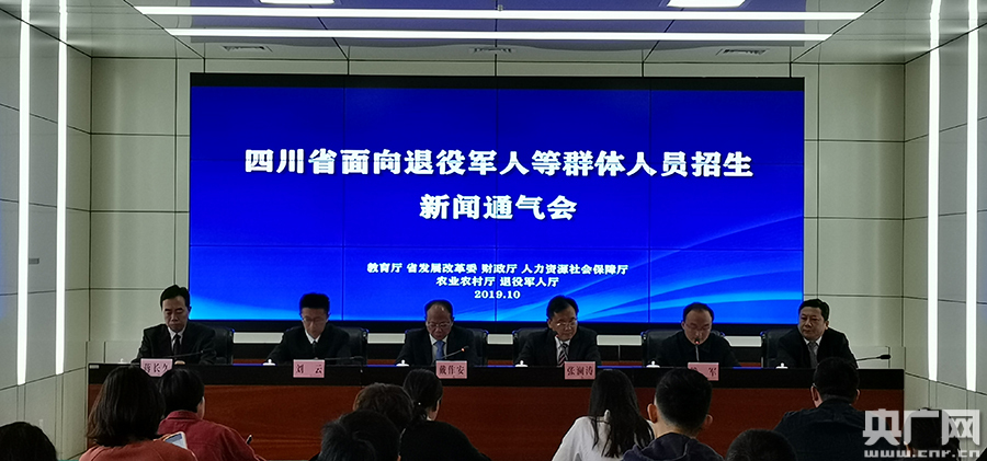 央廣網(wǎng)成都10月18日消息(記者劉濤)10月19日,四川省教育廳、發(fā)展改革委、財政廳、人力資源社會保障廳、農(nóng)業(yè)農(nóng)村廳、退役軍人事務(wù)廳聯(lián)合召開新聞通氣會,公布《四川省2019年普通高等學(xué)校面向退役軍人等群體人員招生實施辦法的通知》。2019年四川普通高等教育高職(專科)擴(kuò)招任務(wù)為7.38萬人,招生對象面向退役軍人、下崗失業(yè)人員、農(nóng)民工和新型職業(yè)農(nóng)民,報名工作將于2019年10月下旬進(jìn)行。