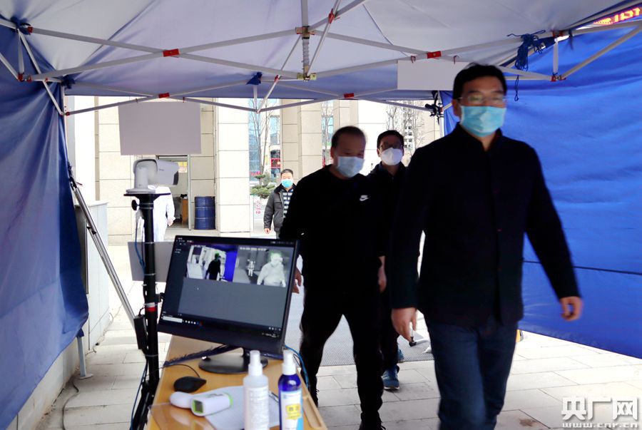 圖為寶雞市石油中學(xué)演練模擬使用學(xué)生入校全自動(dòng)熱成像測(cè)溫篩查系統(tǒng)(央廣網(wǎng)記者 舒隆煥 攝)