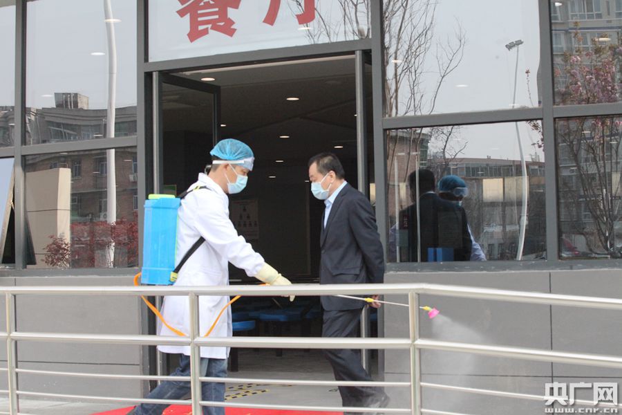 圖為西咸新區(qū)灃東新城車(chē)輛中學(xué)對(duì)學(xué)校餐廳進(jìn)行消殺(央廣網(wǎng)記者 舒隆煥 攝)