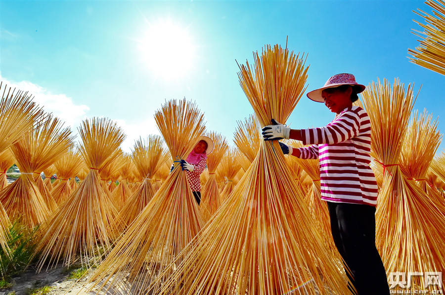 村民晾曬毛竹條(央廣網(wǎng)發(fā) 通訊員朱海鵬供圖)
