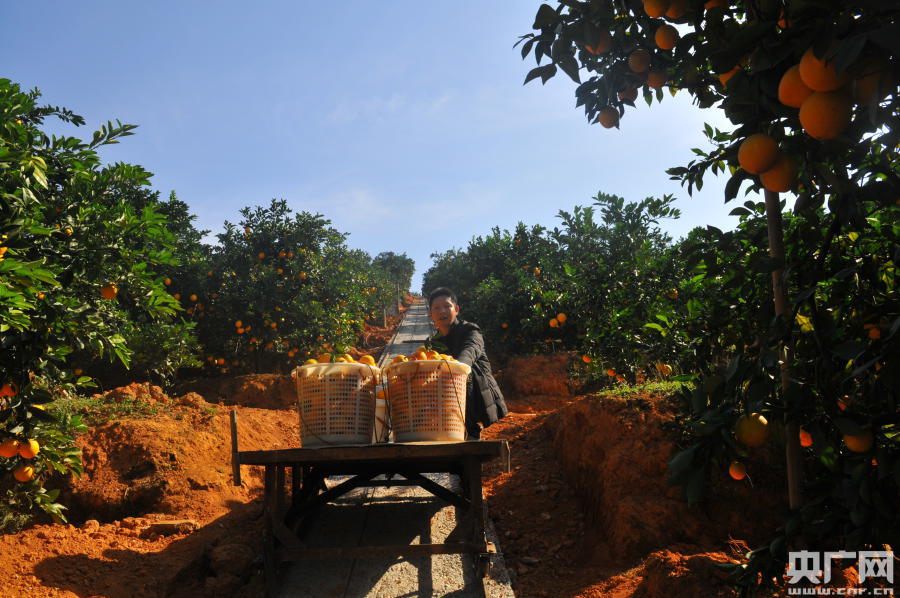 果農(nóng)自建了軌道臍橙運(yùn)輸車(chē)運(yùn)送臍橙,減輕了勞動(dòng)強(qiáng)度(央廣網(wǎng)發(fā) 通訊員供圖)