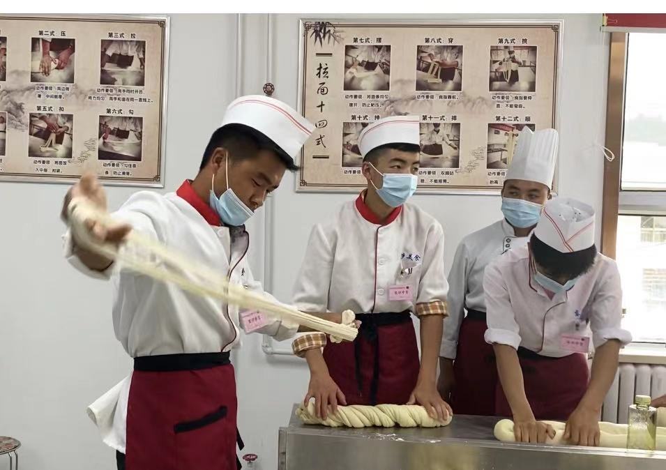 甘肅省臨夏回族自治州東鄉(xiāng)職校開展拉面培訓,學員在學?梢悦赓M學習技能 (總臺央廣記者王妍 攝)