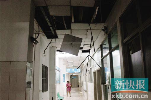 倉庫附近的東莞康怡醫(yī)院多處窗戶天花受損。 新快報記者 畢志毅/攝