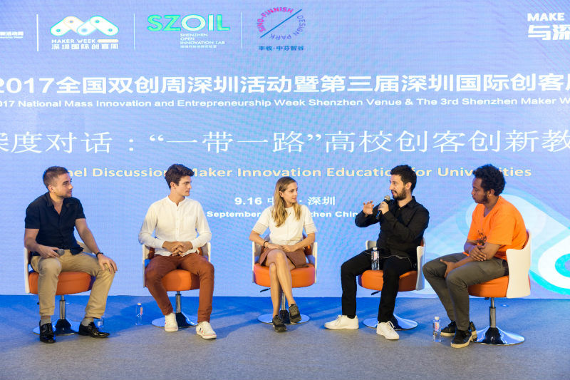 峰會(huì)中,埃塞俄比亞iCog實(shí)驗(yàn)室項(xiàng)目經(jīng)理瑞依·策加耶、Promperu MarcaPeru實(shí)驗(yàn)室負(fù)責(zé)人維克多·古斯塔沃·弗蘭德、MakerTour創(chuàng)客空間/實(shí)驗(yàn)室市場(chǎng)開發(fā)者盧卡斯·格拉凡、MakerTour創(chuàng)客空間/實(shí)驗(yàn)室市場(chǎng)開發(fā)者瑪麗·勒夫羅以國(guó)際化的視野、互聯(lián)網(wǎng)+的思維,圍繞“一帶一路”高校創(chuàng)客創(chuàng)新教育這一話題就如何提高創(chuàng)客、高校院所及學(xué)生的創(chuàng)新精神,培育智能硬件創(chuàng)新創(chuàng)業(yè)生態(tài)環(huán)境等進(jìn)行分享交流。