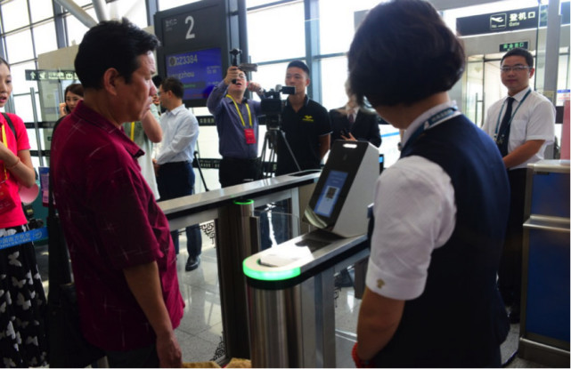 今年6月底,南航在河南南陽(yáng)機(jī)場(chǎng)啟用國(guó)內(nèi)首個(gè)人臉識(shí)別智能化登機(jī)系統(tǒng)。無(wú)需證件、登機(jī)牌,在登機(jī)口前,旅客只需“刷臉”即可秒速開(kāi)閘登機(jī)。