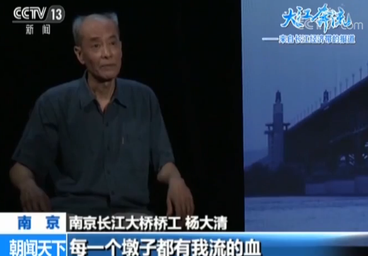 南京長江大橋橋工 楊大清:說老實(shí)話,很累、很苦、也很危險(xiǎn),我講過一次,我說南京大橋江南(段),每一個(gè)墩子都有我流的血,流的汗。