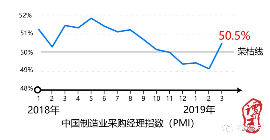 看看3月份的中國制造業(yè)采購經(jīng)理指數(shù)(PMI),一舉從榮枯線(50%)下方回升到50.5%,這可以被理解為經(jīng)濟運行再次進入擴張區(qū)。