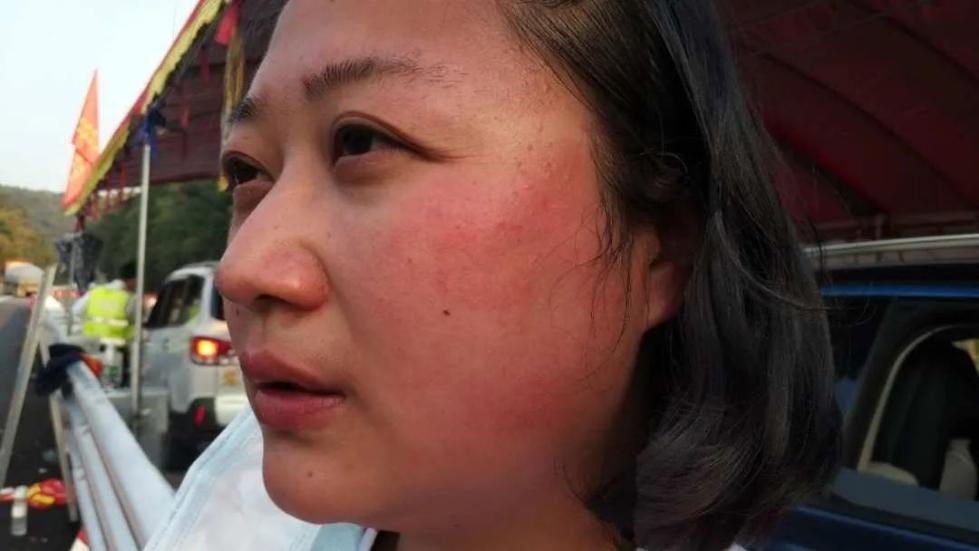 江顏君,是一個(gè)既愛(ài)美又喜歡跳舞的姑娘。在云梧高速防疫一線連續(xù)工作了七八個(gè)小時(shí),腰累、腿麻、喉嚨干、脖子僵硬,毒辣的太陽(yáng)更是將她原來(lái)白皙粉嫩的臉蛋嚴(yán)重曬傷,導(dǎo)致紅腫過(guò)敏,甚至脫了層皮。臉上一出汗,頭發(fā)就容易粘到臉上,用手輕輕地撩開(kāi),劃過(guò)臉,都讓她覺(jué)得刺痛。