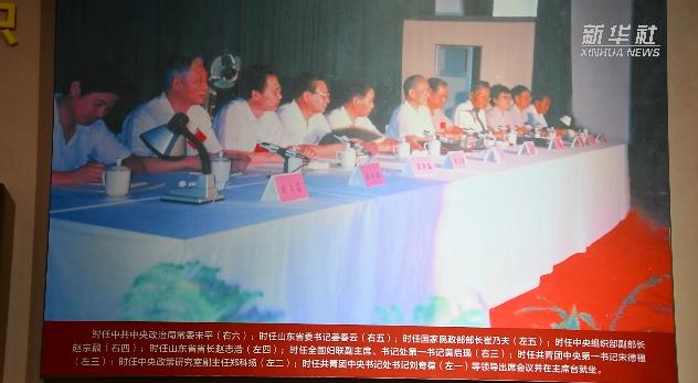 工作人員在“萊西會(huì)議專題展”上為觀眾講解村級(jí)組織建設(shè)“三配套”經(jīng)驗(yàn)(3月25日攝)。新華社記者 李紫恒 攝