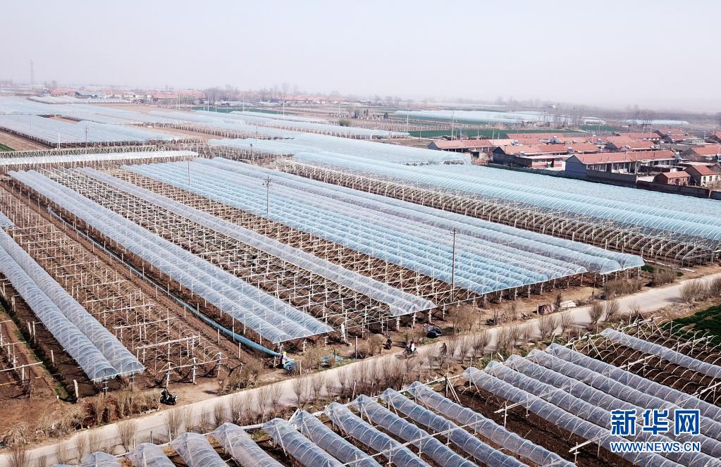 青島萊西市溝東村新擴(kuò)建的葡萄種植大棚(無(wú)人機(jī)照片,3月25日攝)。新華社記者 李紫恒 攝