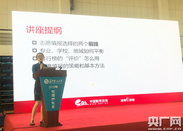 學校特邀請中國教育在線副主編江愛萍講授志愿填報技巧,針對學校、專業(yè)、地域三個維度做了權(quán)衡,針對各類國內(nèi)國外高校排行榜做了分析,傳授了志愿填報方法與報考策略。
