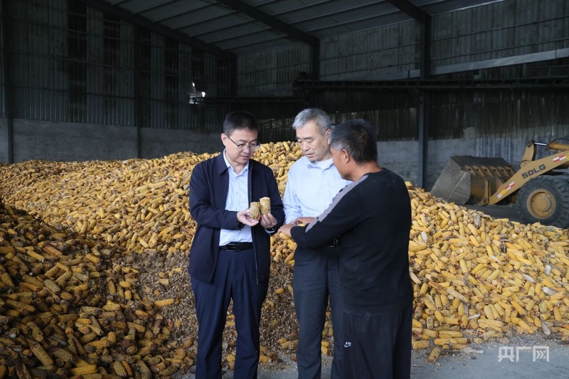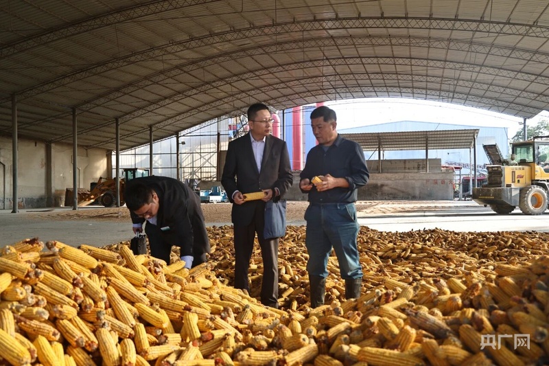 農(nóng)行淄博分行客戶經(jīng)理在山東淄博農(nóng)邦邦糧食烘干收儲(chǔ)服務(wù)有限公司了解糧食收獲情況(央廣網(wǎng)發(fā) 伊碩 攝)