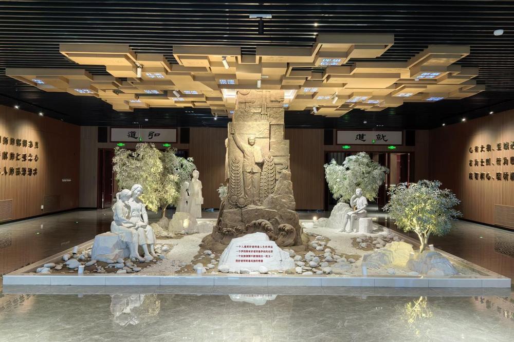 在中國教師博物館序廳,迎面正中的主題雕塑名為《師道》,整體造型為一方沃土、一種精神、一棵大樹,寓意在千年師道的文化沃土上,廣大教師以教育家精神為支撐和引領(lǐng),就道、得道、弘道,“十年樹木、百年樹人”,助力強(qiáng)國建設(shè)、民族復(fù)興的偉業(yè)枝繁葉茂、生生不息。