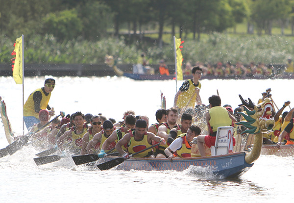 今年恰逢上海高校外國留學(xué)生龍舟賽十周年,現(xiàn)場競賽的氣勢(shì)格外威武和熱烈。經(jīng)過兩輪激烈角逐,華東師范大學(xué)隊(duì)摘得桂冠,東華大學(xué)隊(duì)和華東理工大學(xué)隊(duì)分獲第二、第三名。來自哈薩克斯坦的樂亞莉亞和阿馬恩,是華東理工大學(xué)生物工程專業(yè)的留學(xué)生,已是第三次參加龍舟比賽,在開賽前4周,他們每周要接受兩次的龍舟訓(xùn)練,他們表示,劃龍舟是具有中國特色的一項(xiàng)運(yùn)動(dòng),參加這項(xiàng)賽事感覺非常有趣。