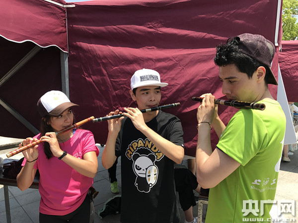 在競渡之余,作為承辦單位的華東理工大學(xué)為前來參加和觀摩比賽的外國留學(xué)生準(zhǔn)備了一道文化大餐:穿著漢服彈古琴,品著粽子聽京劇……在隊(duì)員訓(xùn)練和休整期間,該校學(xué)生社團(tuán)“八仙過海、各顯神通”,向世界各地的留學(xué)生展示了琴藝、插花、漢服、書法、京劇等國粹,為外國留學(xué)生體驗(yàn)中國的傳統(tǒng)文化提供了便利。正在手繪京劇臉譜的巴基斯坦留學(xué)生王凱之告訴記者,今天是自己初次接觸京劇,立刻就對(duì)這一“美麗的”中國傳統(tǒng)文化產(chǎn)生了濃厚興趣,并表示回校后一定會(huì)對(duì)其進(jìn)行具體了解。