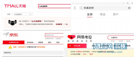 11月22日一早,經(jīng)環(huán)球網(wǎng)科技查詢,包括天貓、京東、網(wǎng)易考拉以及小紅書等電商平臺均已下架D&G相關(guān)商品與內(nèi)容。