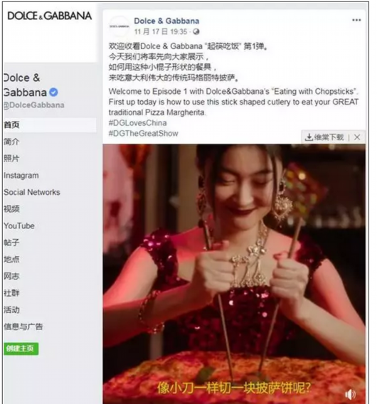 據(jù)報道,此事源于一段D&G所發(fā)布的宣傳片,D&G曾于18日在官方微博及國外社交媒體官方賬號上發(fā)布一則預(yù)告短片。