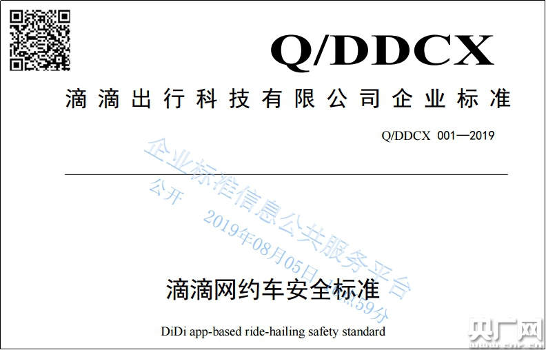 (滴滴出行在企業(yè)標(biāo)準(zhǔn)信息公共服務(wù)平臺發(fā)布《滴滴網(wǎng)約車安全標(biāo)準(zhǔn)》)(央廣網(wǎng)發(fā) 滴滴提供)