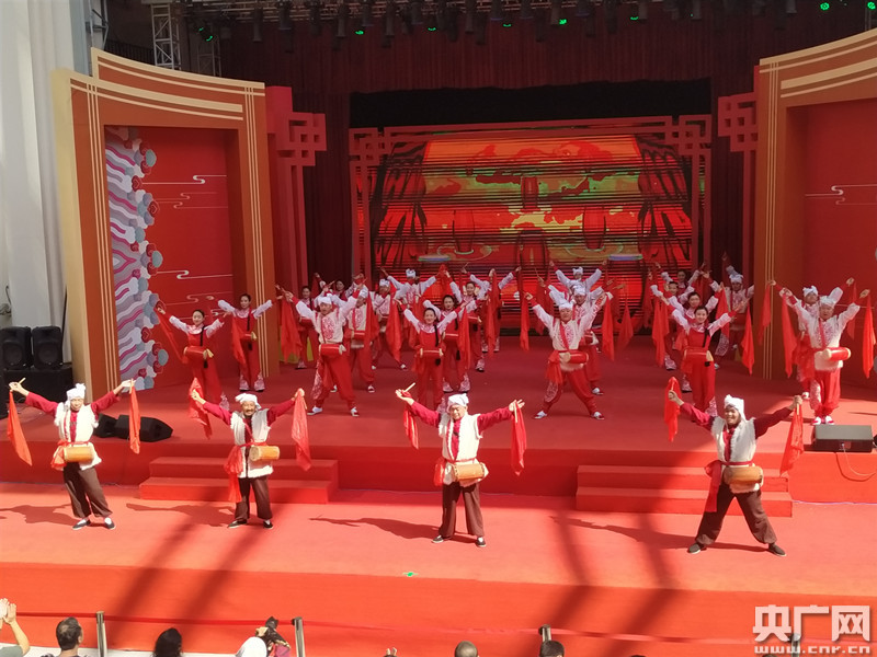 別開生面的陜北“腰鼓大秀”在上海大世界上演(央廣網(wǎng) 林馥榆)