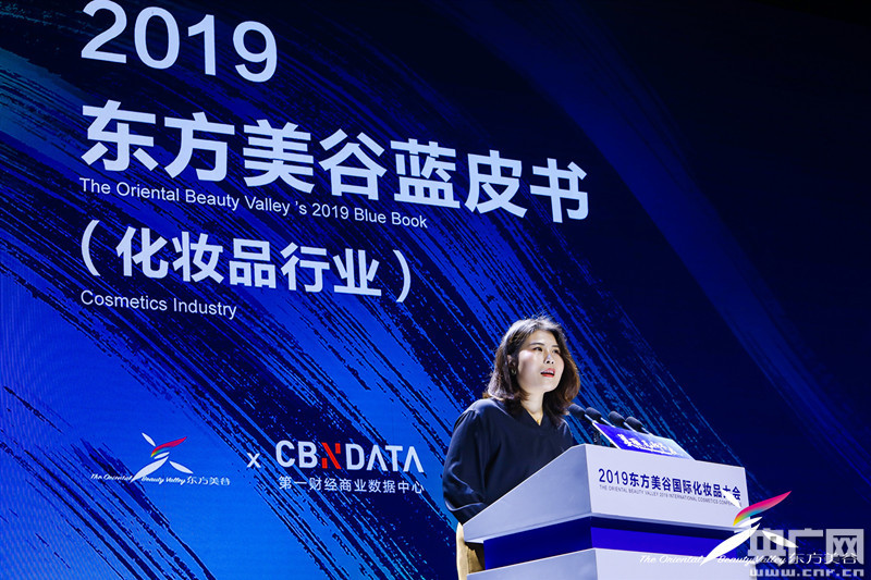 《2019東方美谷藍(lán)皮書(shū)(化妝品行業(yè))》在2019東方美谷國(guó)際化妝品大會(huì)發(fā)布(央廣網(wǎng)發(fā) 奉賢區(qū)新聞辦供圖)