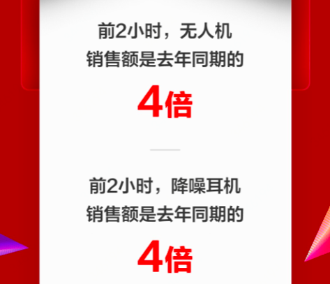 各種新奇特的商品也受到消費(fèi)者熱捧。1日到10日游戲手機(jī)銷量是10月同期的2倍,海底撈自熱火鍋銷售額增長了500%,智力快車早教兒童機(jī)器人增長200%。