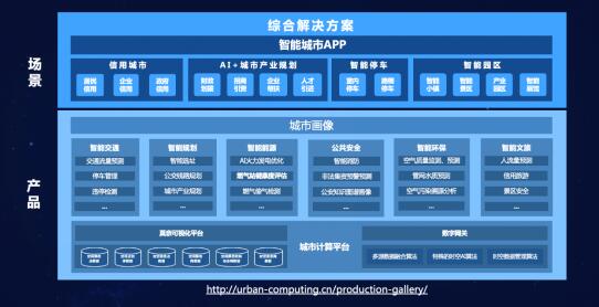 第三層是場(chǎng)景化解決方案層,包括信用城市解決方案、AI+城市產(chǎn)業(yè)規(guī)劃解決方案、智能停車場(chǎng)解決方案、智能園區(qū)解決方案和智能城市APP五大場(chǎng)景化解決方案。解決方案可以調(diào)用不同種類的產(chǎn)品,比如在智能園區(qū)解決方案中,會(huì)綜合使用智能交通中的停車管理產(chǎn)品、智能規(guī)劃中的智能選址產(chǎn)品、智能能源中的燃?xì)庹窘】刀仍u(píng)估產(chǎn)品,針對(duì)智能園區(qū)的特定場(chǎng)景,組成一整套解決方案。
