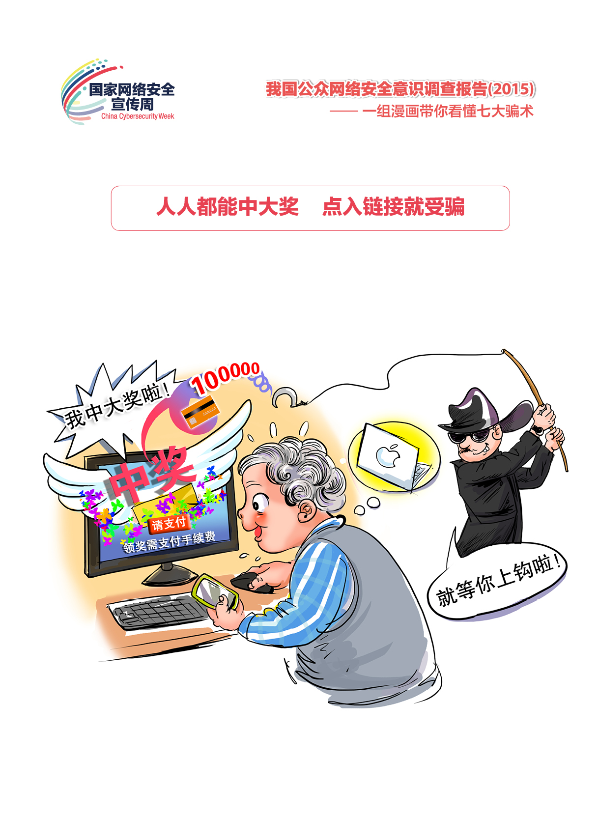網(wǎng)絡(luò)安全宣傳周漫畫解讀——人人都能中大獎 點入鏈接就受騙