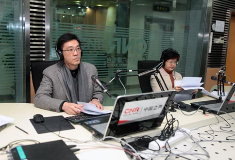 中國(guó)之聲主持人楊昶與嘉賓互動(dòng)