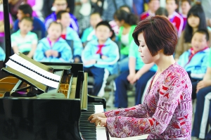 從海頓到舒伯特,再到《水草舞》、《歡樂的牧童》,陳薩精心為孩子們選擇了多首相當動聽的中外鋼琴小品,并以講演結(jié)合的方式,為孩子們生動講述了這些動聽曲子的背景和故事,讓孩子們感受到了室內(nèi)樂輕松幽默又或是靜謐甜美的另一個側(cè)面,從音樂中聽到了從未聽到過的“童話故事”。演奏間歇,她還鼓勵孩子們走上前來,試著觸摸鋼琴。其中一名患有自閉癥的孩子聽了陳薩彈奏的一首《天空之城》后竟然能模仿得有模有樣,雖然只是簡單的旋律,但也讓陳薩非常激動!拔也恢酪淮我魳窌芙o這些孩子帶來什么,也許并不能完全打開他們的世界,但卻可以尋找一種和他們交朋友的方式,讓他們知道世界并不是那么的孤單。”陳薩說。