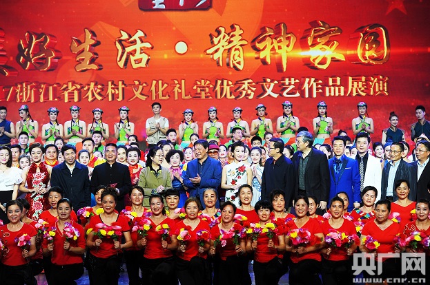 央廣網(wǎng)杭州11月3日消息(記者謝夢潔 攝影劉智寧) 11月2日晚,“美好生活 精神家園”——2017浙江省農(nóng)村文化禮堂優(yōu)秀文藝作品展演活動在浙江省人民大會堂舉行。展演現(xiàn)場,400多名來自浙江各地農(nóng)村文化禮堂的“草根們”通過自編自導自演,把鄉(xiāng)土文化搬上了文藝大舞臺。