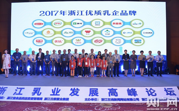 在現(xiàn)場,19家浙江乳企共同發(fā)布了“品質(zhì)引領(lǐng)乳業(yè)升級的“浙江倡議”,為進一步鞏固和增強乳業(yè)發(fā)展自信,在更高水平上滿足乳制品消費需求一起作出努力,同時還頒發(fā)了2017年浙江優(yōu)質(zhì)乳企品牌。