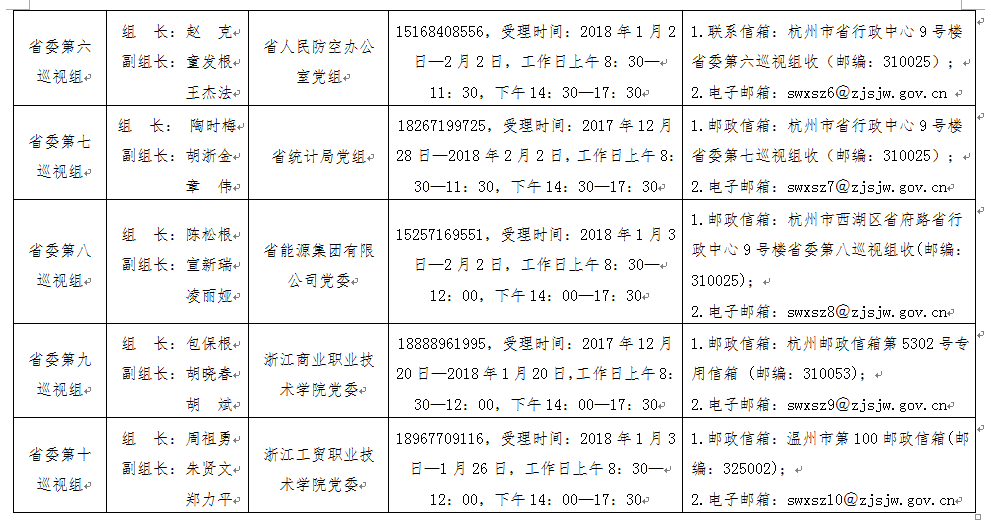 據(jù)悉,第二批進(jìn)駐的10家單位分別是省統(tǒng)計(jì)局、省人民防空辦公室、省地質(zhì)勘查局、省能源集團(tuán)有限公司、財(cái)通證券有限責(zé)任公司、浙江旅游職業(yè)學(xué)院、浙江商業(yè)職業(yè)技術(shù)學(xué)院、浙江金融職業(yè)學(xué)院、浙江建設(shè)職業(yè)技術(shù)學(xué)院、浙江工貿(mào)職業(yè)技術(shù)學(xué)院,每個(gè)單位集中巡視時(shí)間為期1個(gè)月左右。