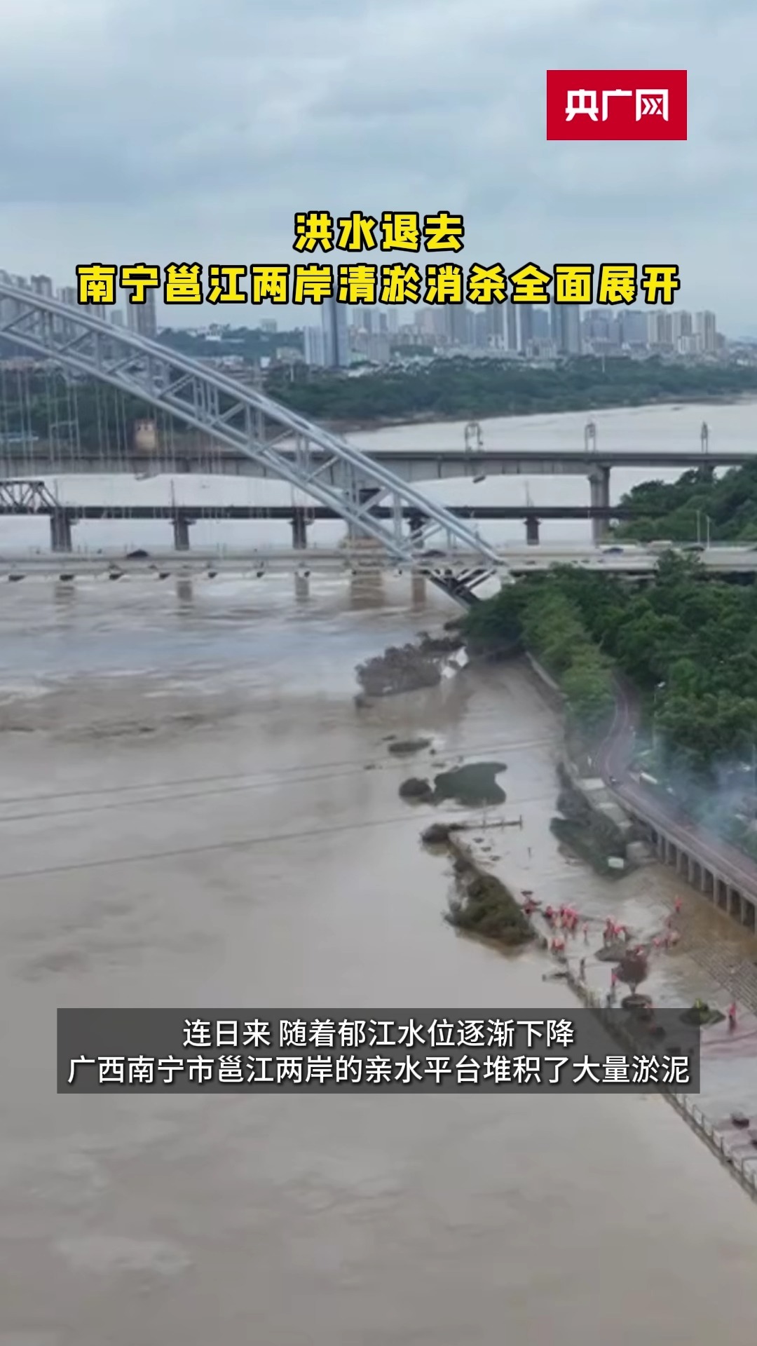 洪水退去 廣西南寧邕江兩岸清淤消殺全面展開